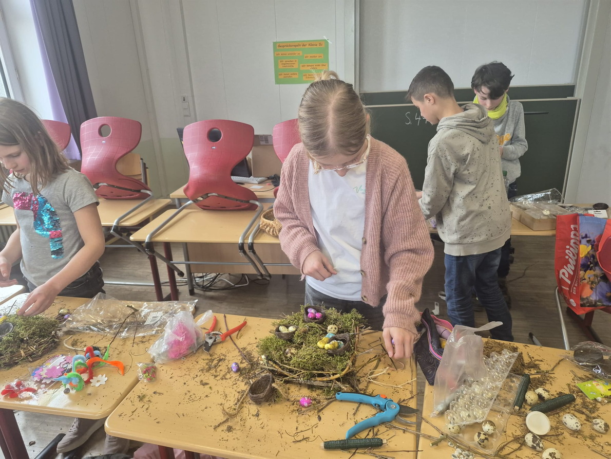 Mit großer Sorgfalt und Freude entstanden so einzigartige Nester, die anschließend mit bunten Ostereiern dekoriert wurden. Dabei konnten die Kinder nicht nur ihre Kreativität ausleben, sondern auch einen bewussten Umgang mit natürlichen Materialien erlernen.