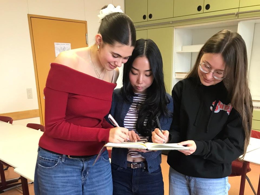 Wer mehr über Frankreich erfahren will, aber die Sprache noch nicht spricht: Ab Klasse 8 kann am JPG Französisch gelernt werden, als dritte Fremdsprache. Und die Fachschaft Französisch bemüht sich gerade nach Kräften, eine Austauschschule im Nachbarland zu finden, um einen <<échange>>, also einen Schüleraustausch, auf die Beine zu stellen. Damit man tarte au citron, pain au chocolat oder quiche auch einmal in einer französischen Bäckerei oder einem Restaurant in Frankreich bestellen und genießen kann!
