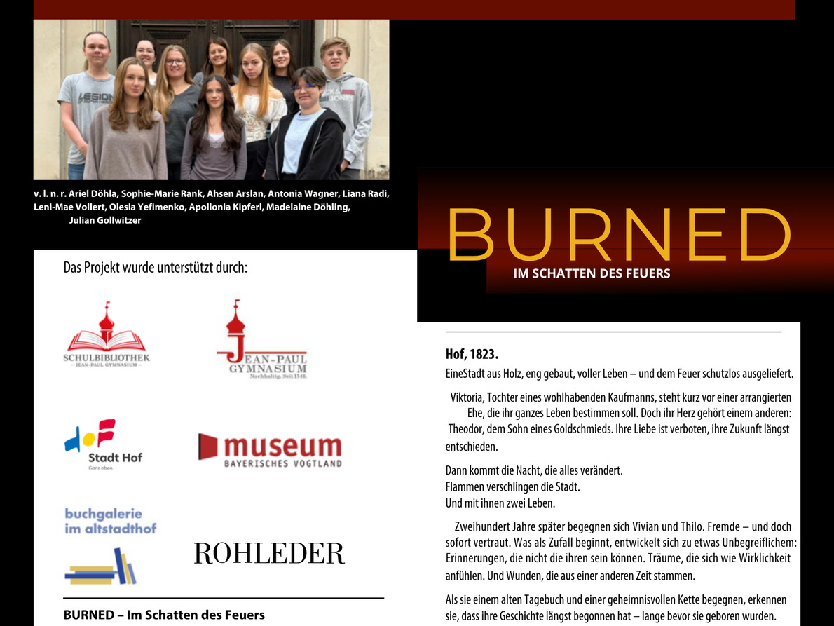 Am 21. Juli 2026 ist es soweit: Das im Rahmen eines Schulprojekts entstandene Buch „BURNED – Im Schatten des Feuers“ erscheint offiziell im deutschen Buchhandel.